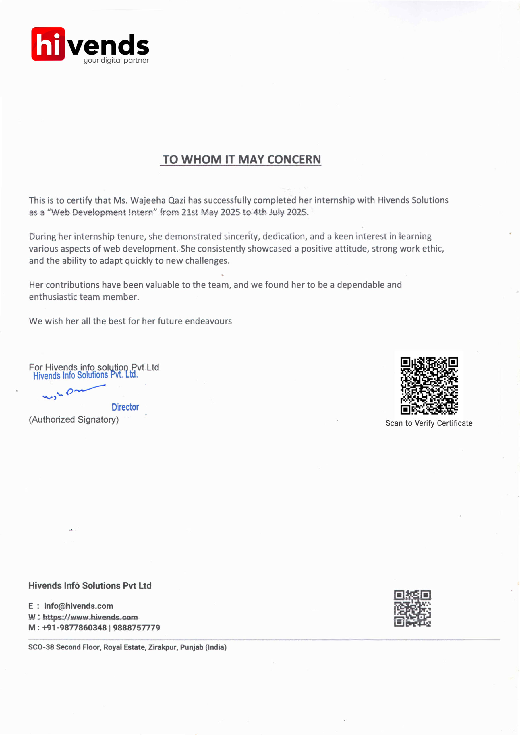 | Organization | Hivends Info Solution Pvt. Ltd. |